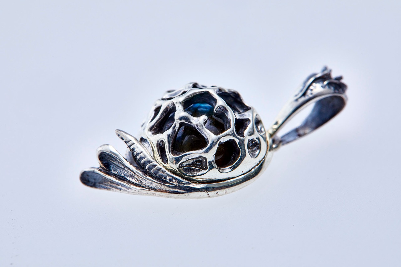 網目の中にはラブラドライトが覗く。